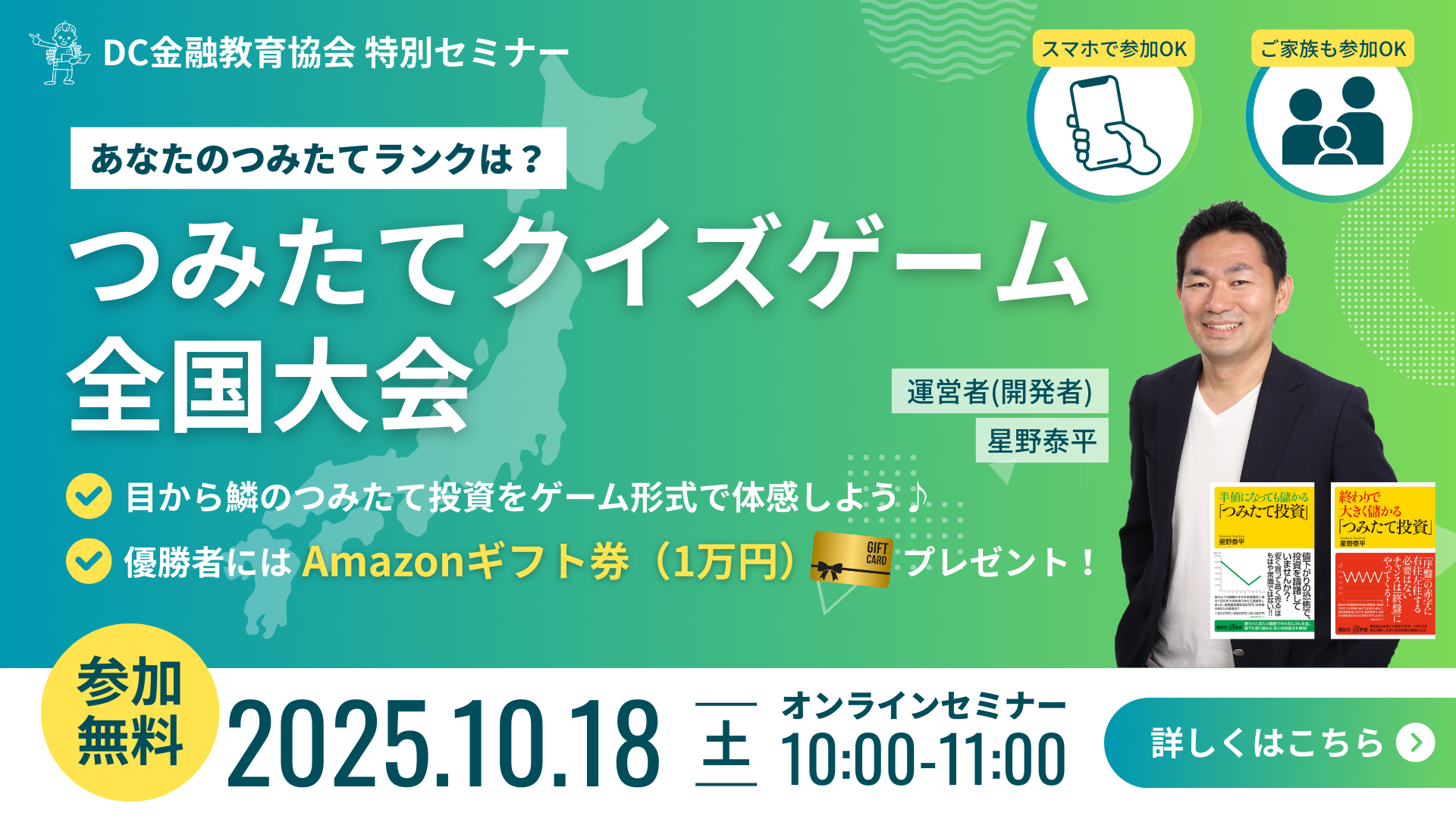 【10/18(土)】つみたてクイズゲーム全国大会を開催します2025年10月3日セミナー/イベント 10/18(土)にオンラインでつみたてクイズゲーム全国大会を行います。 ご参加ご希望の方は、こちらからお申し込みください。 お申込みはこちら